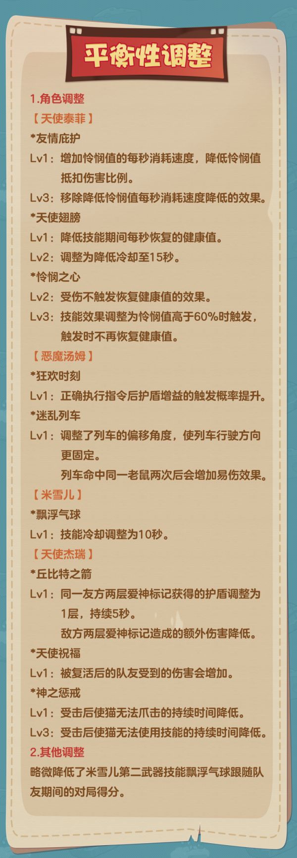 略微降低了米雪儿第二武器技能飘浮气球跟随队友期间的对局得分。