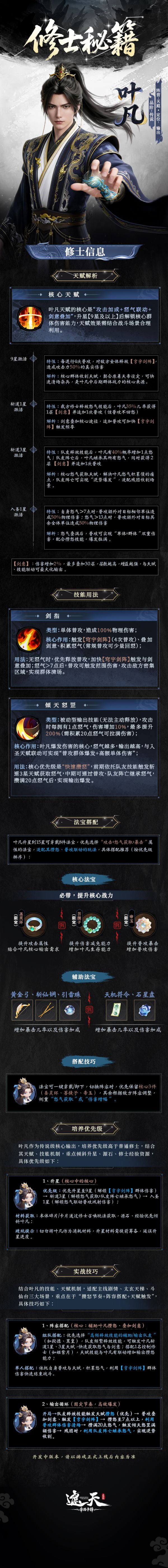 道友们好,欢迎来到修士秘籍栏目。从今天起,我们将在本栏目介绍修士的玩法攻略也希望本栏目可以帮助更多的道友修行哦那么话不多说,我们进入正题——叶凡,一介凡人乘九龙拉棺踏入星空,开启修仙之旅。他的荒古圣体引来诸般嘲笑,却一路逆伐天骄、血战诸天,最终成帝!本期将带来叶凡的技能讲解与玩法搭配等,且助道友开局不迷茫!