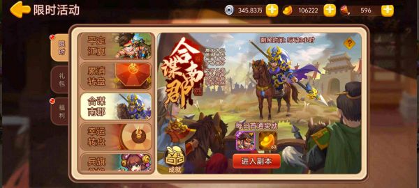 活动内容:活动期间开放“合谋南郡”限时副本,每日首通获得奖励。