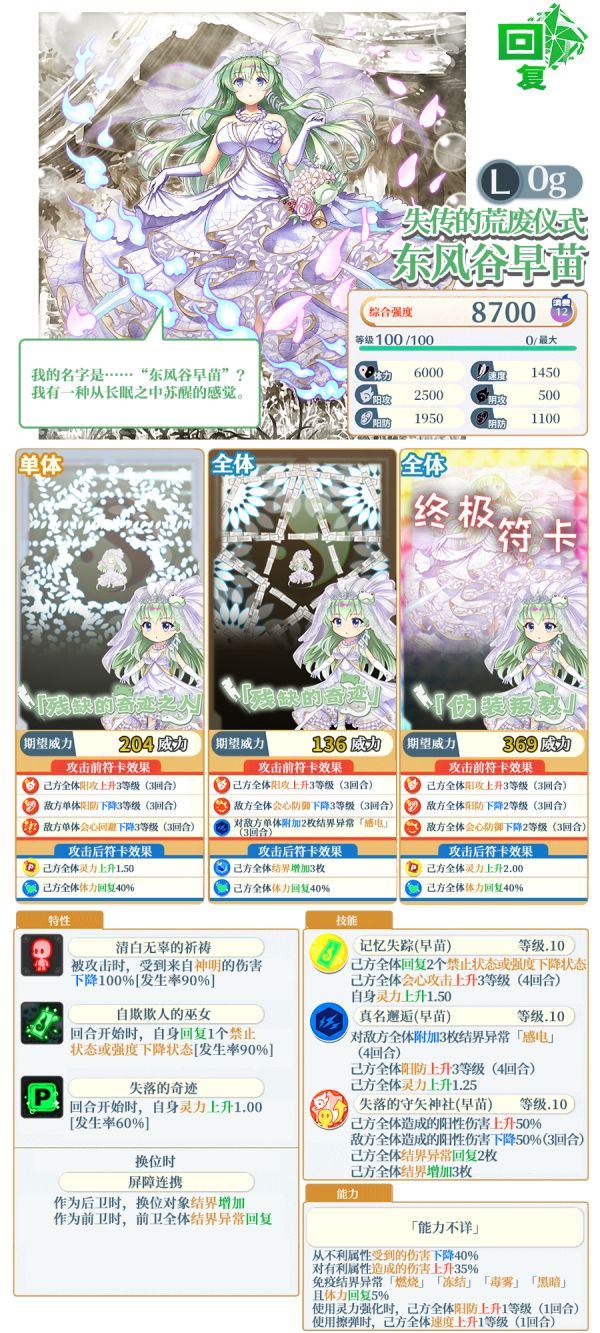 ※「失传的荒废仪式 东风谷早苗(L0g)」的伙伴升格需要使用「报告绘卷」。