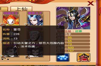 1.九头驸马:(招募可得)此将的推图技能“雷罚”为法术伤害,群伤前期清小怪的神技,对“物抗怪”效果非常不错,一段瞬伤输出,不拖泥带水,技能基础伤害在紫将里算是最高的了,PK技能“地煞站气”也十分强力,能大幅提高自身伤害,如果前期抽到可以多加培养作为重点发展的弓将,等区内玩家们菩提老祖都兑换出来时可以慢慢淘汰,再不济也是个魔王弓。