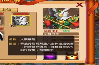 4.青牛精:(凝魂秘境兑换可得)(可以提神)鸡肋一个,不建议兑换,技能伤害太低,PK技能还不错,但是作为需要用凝魂玉才能兑换的仙将来说,青牛精并不能对得起他的价格。平民和小V玩家,不建议兑换,大V玩家可以考虑兑换一个用来合成大鹏。大鹏的PK技能全体减疗(唯一性)在打肉奶阵容时还是很好用的。