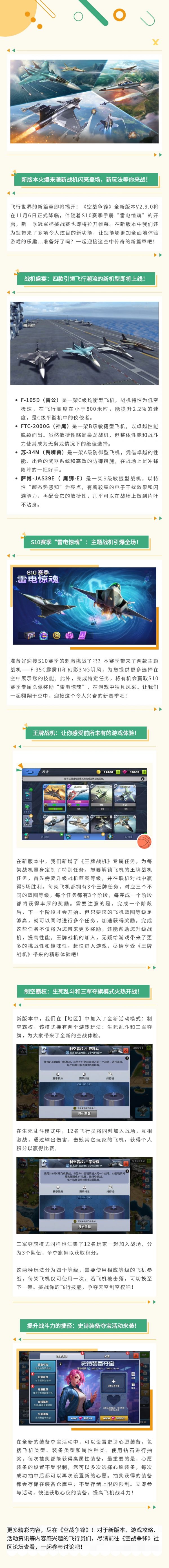 飞行员们,全新版本V2.9.0即将上线,S10赛季手册“雷电惊魂”将于11月1日开启,新一季冠军杯挑战赛也将隆重开启,期待您的加入!
