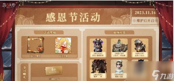 最后:上面是九游小编为你带来的第五人格2023感恩狂欢活动开始时间,希望帮到大家。