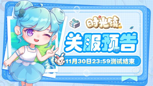 《时光镇》拾光测试将于11月30日23:59正式结束!届时将无法登录游戏,本次测试中的所有数据将被全部删除,充值在届时公测将按照【充值返利规则】返还,具体规则请详见:《时光镇》「拾光测试」充值返利规则,还请大家注意结束时间呦~
