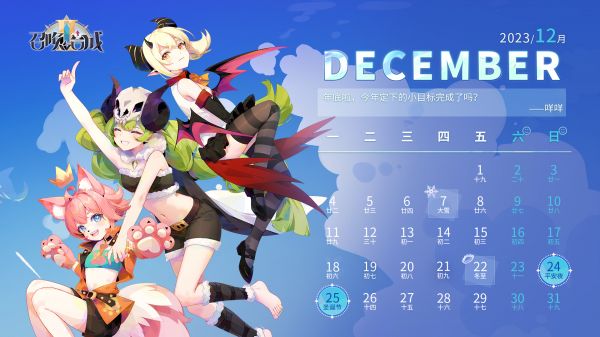 同时,我们也照例为大家准备了12月日历与壁纸,欢迎各位自行取用!游戏内也有燃灯邮件~大家记得领一下哟。