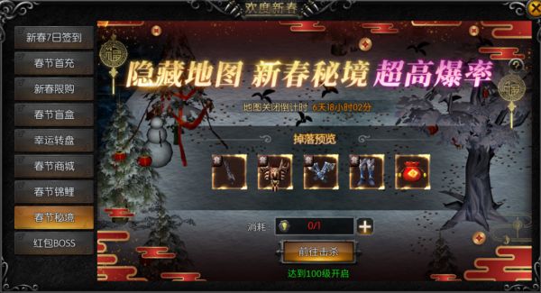 活动期间,开启隐藏地图春节秘境,地图boss爆率超高!