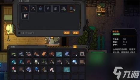 首先是15铁板的拳套和鞋子,一个能提升5暴击和0.5挖掘速度,另一个能加50生命值和44护甲,附带0.1的移速,前期还是挺关键的。
