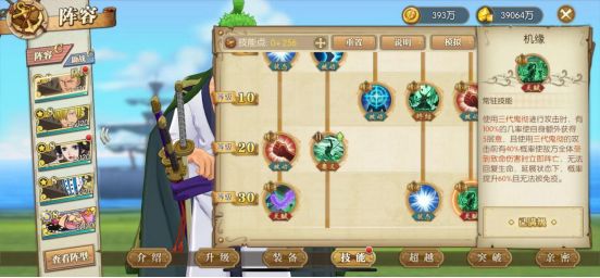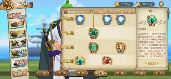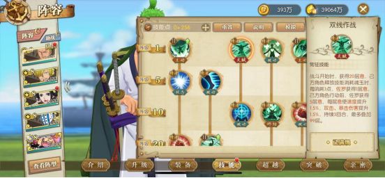 和之国佐罗此天赋可以说对于和之国草帽团的提升不可谓不大,为和之国草帽团群体提供了30%的加速,同时每上场一名草帽团成员,就会额外为佐罗提供五层意。当佐罗进入奥义延展状态时,还可以为草帽团分摊80%的伤害,可以说是解决了目前在佐乌&空岛的环境下和之国草帽团生存能力略微逊色的问题。另外该天赋佐罗还会获得生命、攻击、速度、防御、暴击、命中、伤害加成、伤害减免、最终伤害加成、最终伤害减免的提升,对于和之国佐罗自身来说是极大的数值增益。