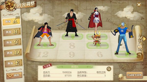 和之国路飞:携带三个主动技能搭配全体奥义。由于路飞的全体奥义附加30%几率的眩晕效果,在命中对面佐罗时有几率令其眩晕,跳过其行动回合,形成我方多打少的优势局面。