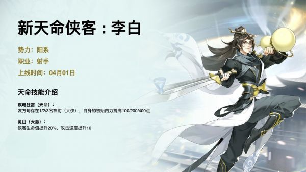 全新开放的天命侠客,劍仙归位,疾风骤雨。