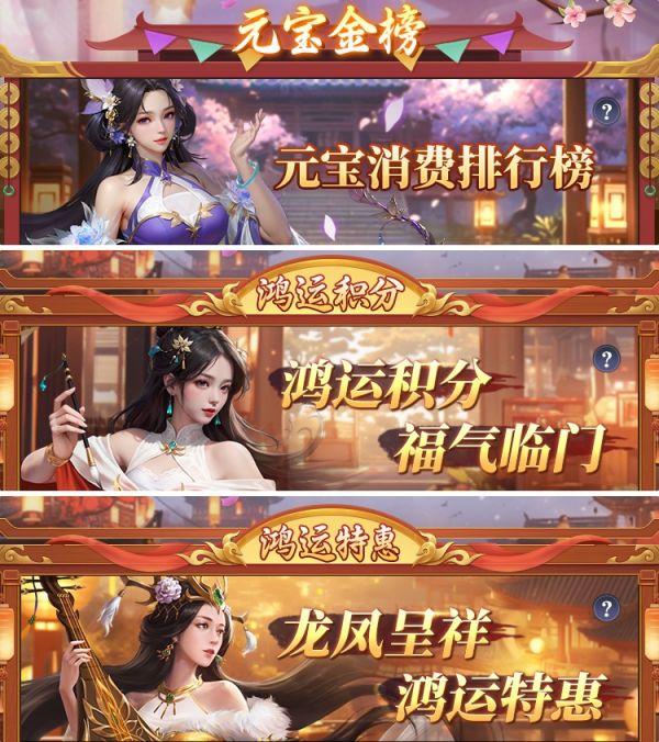 2)元宝金榜开启,消费一定元宝数量开启金榜排名,可获得排名对应奖励,内含豪华礼包以及大量元宝回馈;