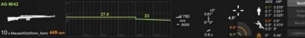 究极稳定性和射速弹速以及简单分区的低伤害(百米内4发外5发击杀)让这把枪成了一个很惬意的选择,手感方向上的极大优化可以说这把枪在中远阶段(50m-100m)对枪完全不输mas44。而如果来到双伤Agm42的强度会直接登顶,单发伤害低但和别的半自动一样也是百米内两枪击杀,在保持其他枪90%伤害水平的同时可以倾泻150%的火力,以至于双伤玩这把枪可能有人传人的情况。这枪的弱点在于加点没有一点腰射强化,平衡的伤害曲线和不足的腰射系数使得这枪近距离几乎没有还手的机会。