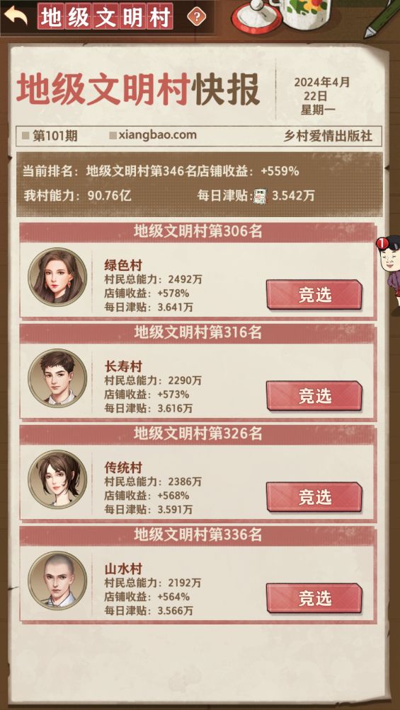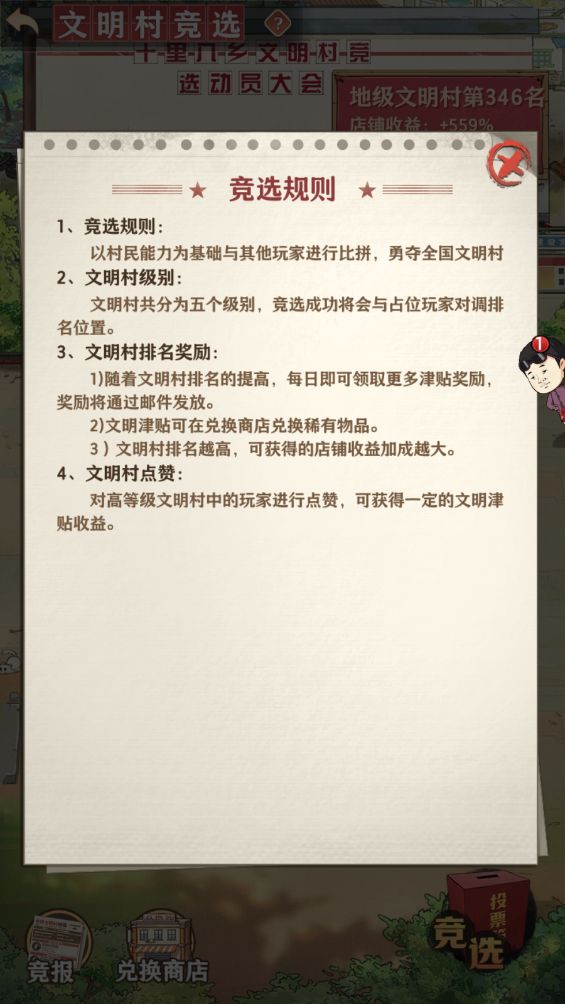2、竞选排名可提高每日津贴,对店铺收益还有其他玩法系统有关联