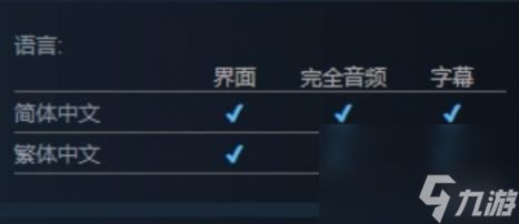 1、在steam的购买页面的语言支持列表里可以看到目前支持简体中文和繁体中文。游戏内默认语言为简体中文。