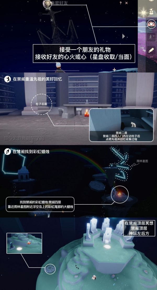 《光遇》游戏中每天的每日任务及大蜡烛的位置都不相同,玩家完成每日任务及收集大蜡烛都可以得到丰厚的兑换奖励,奖励可以用于兑换各种动作及道具,不过很多小伙伴不知道每日任务怎么做,又懒得自己去找大蜡烛的位置,我们汇总了每日任务的完成攻略以及蜡烛位置,一起来看看吧!