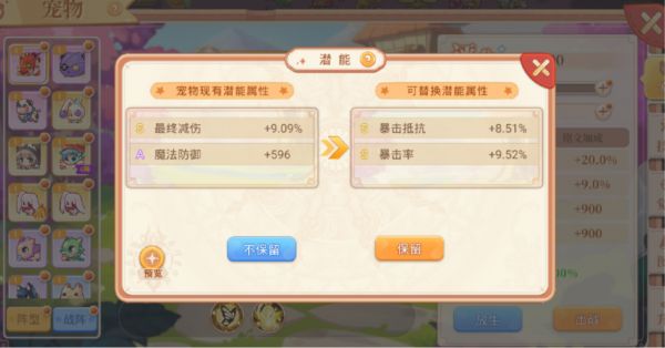 ※饼妹小贴士:宠物品质不一样,潜能属性的级别档次也都不一样。所以,建议岛民们战阵中,选择宠物品质最高的添加潜能。