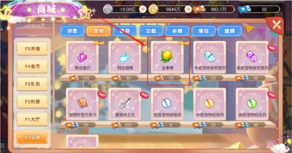 金果果:商店-百货-宠物选项中,花费点券购买。