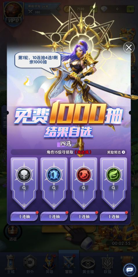 活动形式:当角色等级达到一定要求,即可解锁对应轮次的抽卡活动。活动共有29轮抽卡,每轮抽卡大家可进行2-4次的十连抽,每次十连都有S级以上英雄作为保底,在当前轮次抽完后可自选1次最心仪十连的抽卡结果进行领取。