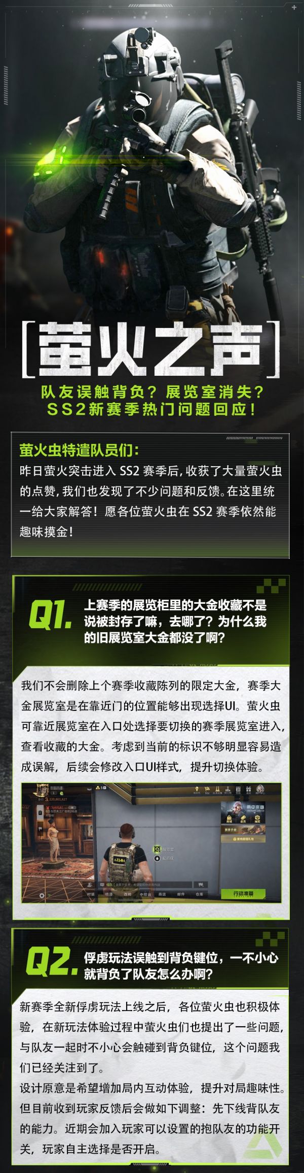 萤火之声丨队友误触背负?展览室消失?SS2新赛季热门问题回应!