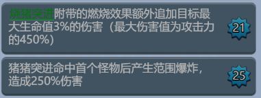 21级:猪猪突进附带的燃烧效果额外追加目标最大生命值3%的伤害