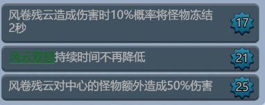 风暴延续(入门):风卷残云杀死怪物后,持续时间+0.5秒。