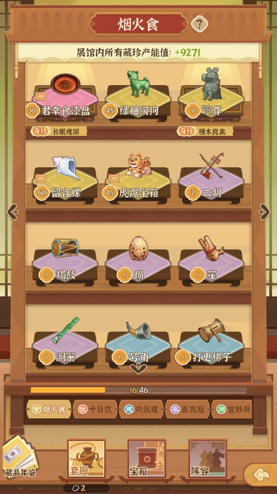 收集藏珍可获取藏珍收集分,获得大量奖励,同时收集并提升提升藏珍,可大力提升街主的产能哦。