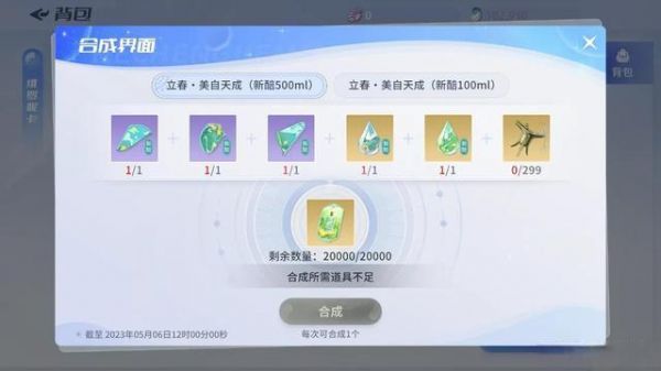总之,这个游戏属于长期玩的,平民玩家不可能所有节气酒都能拿到,因为碎片不可能一次凑齐,而且基酒积攒大瓶的差不多要2个月,但每个季节拿一个节气酒还是可以的,一年四瓶没有问题。当然氪金玩家随意了,一种节气酒都可以拿3瓶,一年可以拿72瓶。