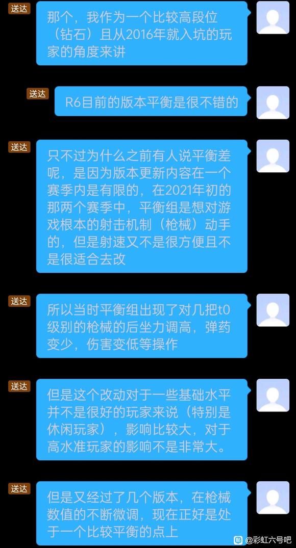 说实话,隔壁LOL也天天喷设计师,也会因为改动有不同意见,但是那边至少明白一个道理,高段位就是比低段位理解更好,平时吵架大多数就是按规矩,段位说话。换到r6s,真就是以青铜之躯硬撼钻石冠军。
