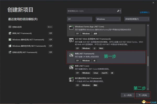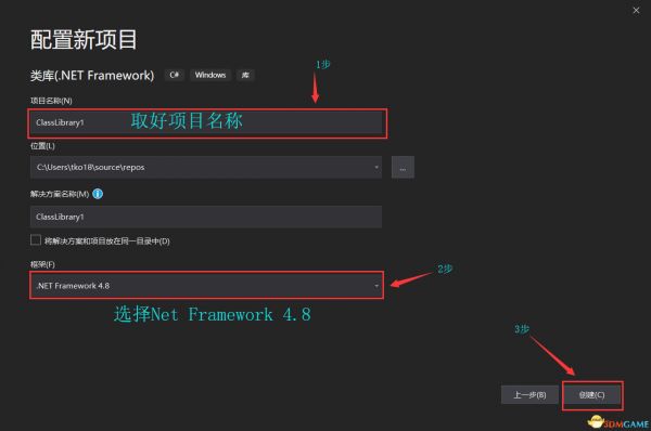 1.首先打开Visual Studio 2019,新建一个C#的类库项目,.NET Framework 版本改为4.8: