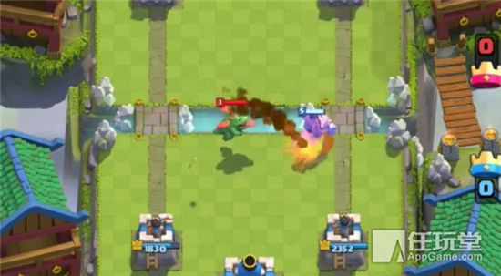 当对手的飞龙宝宝进攻时,可以在自己的黄金防守点放下野猪骑士,这样会吸引飞龙宝宝的注意,将飞龙宝宝拉到中心点同时受到两个公主塔的攻击。这样做的话,可以在防守的时候同时组织了一波进攻。