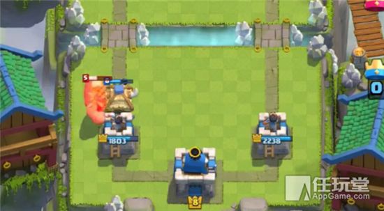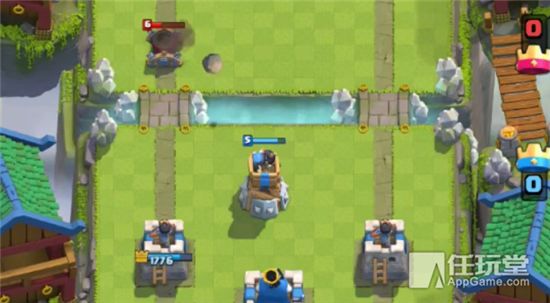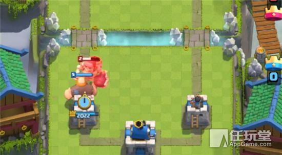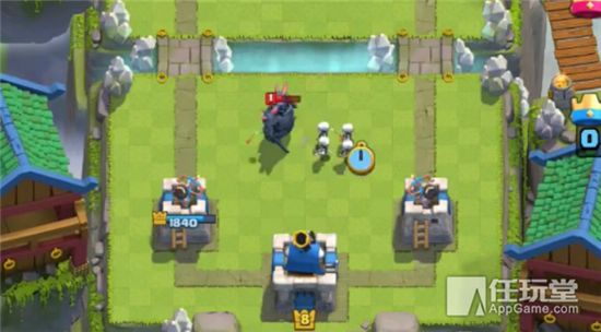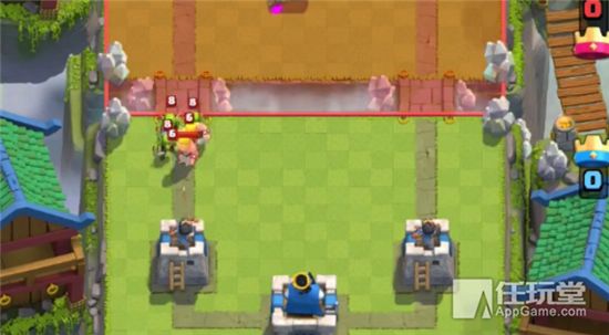 对付对手的大皮卡、石头人等高生命值生物,我们可以使用野猪对付飞龙的思路,将他们吸引到黄金防守点的位置,受到两个公主塔的攻击,这样我们会更容易防守。
