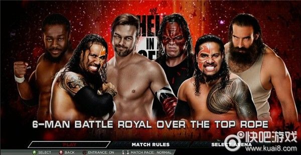 这种比赛好象是为KANE量身定做的比赛形式,也很符合KANE的角色,第一场地狱火焰是由KANE对自己剧情上的哥哥-UT,似乎效果还不错,这种比赛也是硬核,无规则,胜利条件就是将对手用火点着了身体的某个部位。