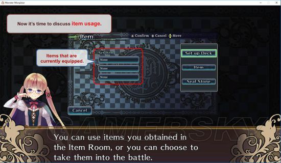 另外卡组还可以设置道具,一般为恢复品和攻击药品之类的道具,大多数战斗都不会使用,如果过关有困难可以在商店购买点设置下。