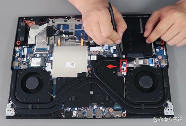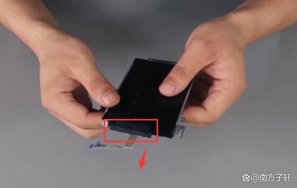取下支架后,先要把SATA硬盘连接转换头拆下,温柔得拔出即可,