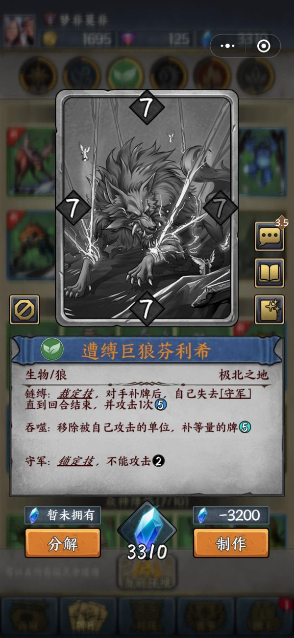 在裂齿首领找到合适的角落产仔后,用维拉来确保后续进场卡牌的强势,同时裂齿首领会避免狼类生物被翻面,将场面维系在优势局面。虽然另一张橙卡遭缚巨狼芬利希也享受裂齿首领的防翻面效果,但是在单卡的功能性上远不如森林之神,被动的触发方式也容易被对方规避,所以在橙卡唯一的规则下选择带的森林之神。另一张橙卡狩猎女神忒弥尔跟这套的相性不佳,所以不多赘述了。