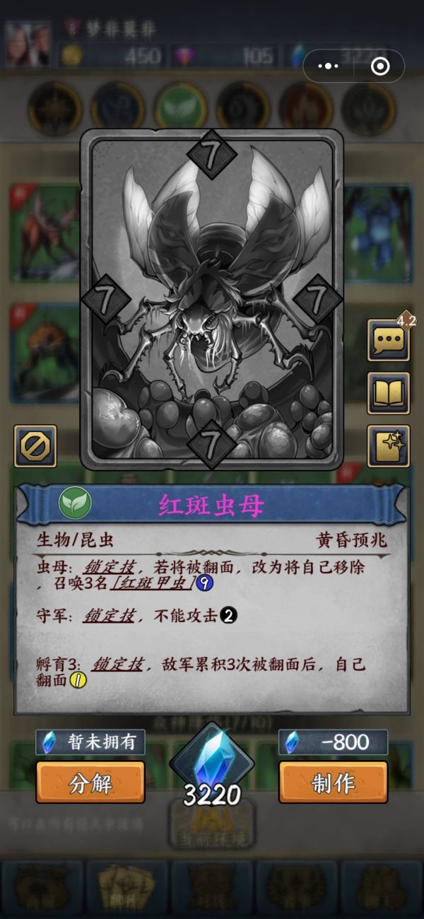 在上周的更新之后,将裂齿首领下崽的几率从40%下调到30%,一定程度上削弱了这套牌组的强度,但依然属于可以玩的级别。另外一张召唤流的KEY牌红斑虫母,相对可以携带更多的解牌,构筑更加灵活,就是召唤的条件也相对苛刻一些,卡组上限也略低于狼群。