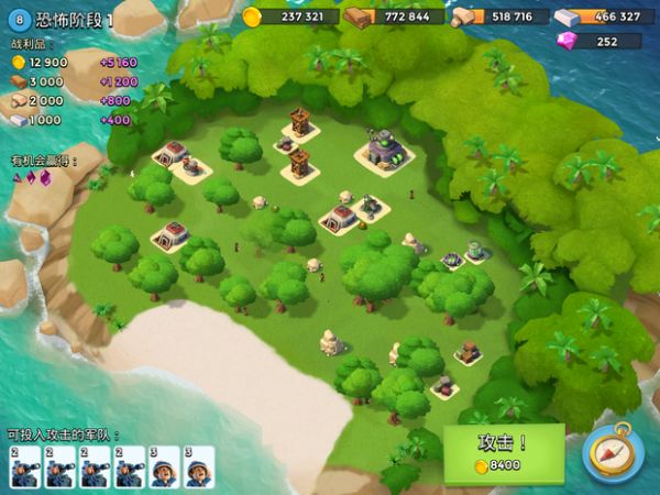 18.升级基地后,有多种建筑需要升级,一般情况先升神庙、战舰、保险库、雷达(根据自己的实际情况和资源情况选择先后)