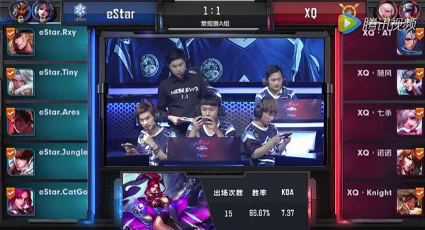 纵观目前的KPL,最爱用这套战术的就是我们的王者之师eStar战队,Rxy也是凭借着这种战术带来的收益,荣登KDA榜第一。在他们的比赛中,CatGod坐镇中路,Tiny在前面保护着队友,Ares辅助着大家,Orange打野全场游走支援,而Rxy就操刀射手,担当起队伍后期的核心输出。