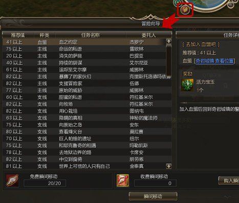 2. 每次升级后请打开的冒险向导(快捷键Y)查看当前未接取的任务,并可直接传送前往,主线、支线、每日任务都不可错过,有大量的经验、技能点、金币奖励哦,建议接取完后同时完成