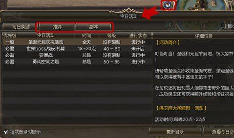 1. 每次登录游戏时或通过雷达侧栏打开「今日活动」可以查看各种推荐的活动和副本信息,每天都参与,可以获得丰厚的经验、技能点、装备 的奖励