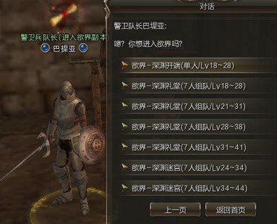 5. 找古镇「警卫队长」选择「进入欲界-深渊开端入场」,开始首次单人副本挑战(副本里有NPC佣兵协助玩家轻松挑战BOSS,收获海量D级装备等宝物)