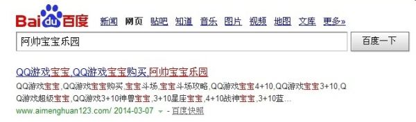 1、打开百度,或者360搜索,谷歌搜索都行,输入“阿帅宝宝乐园”点击搜索,然后进入阿帅宝宝乐园,如下图: