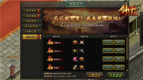 福利大厅包含了每日签到、在线奖励、激活码兑换、更新公告、资源找回5项内容,其中每日签到和资源找回是100%可以获得圣器材料。每日签到达到2次、5次、10次、17次、25次可以获得相应奖励,奖励中主要包含玉佩和神石碎片。资源找回则是会提供大量神石、龙珠碎片,没错,是大量,量大到惊人,可以免费找回,也可以花费少量钻石一键全部找回。