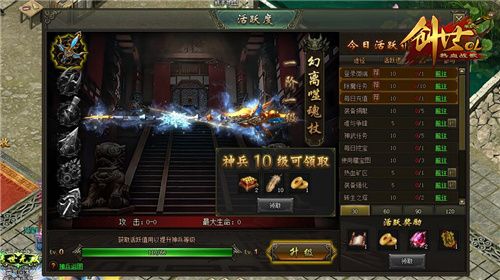 活跃度是衡量一个玩家在游戏中活跃程度的属性,当玩家参与的任务、副本、活动越多,活跃值也就越高,相应地系统也会给予如此努力的玩家相应的嘉奖。在360《热血战歌之创世》里,玩家可以通过登录微端、除魔任务、每日挖宝、使用藏宝图、装备强化、装备捐献等各种方式实现活跃值的增加,当每日活跃值达到30、60、90、120后,系统会给予神石、玉佩、如意等碎片,但是数量没有福利大厅多,可选择性挑战。