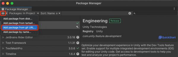 1.1.安装 UOS Launcher在 Unity Editor 菜单栏中打开「Window -> Package Manager」,点击左上角的「+」,选择「Add package from git URL」,输入UOS Launcher 的 git 地址如下,点击「Add」等待安装完成。