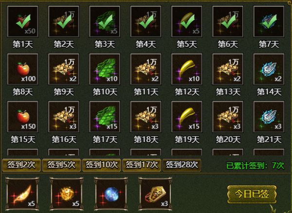 每天登录签到可以领取,并且根据签到次数还可以额外领取签到奖励