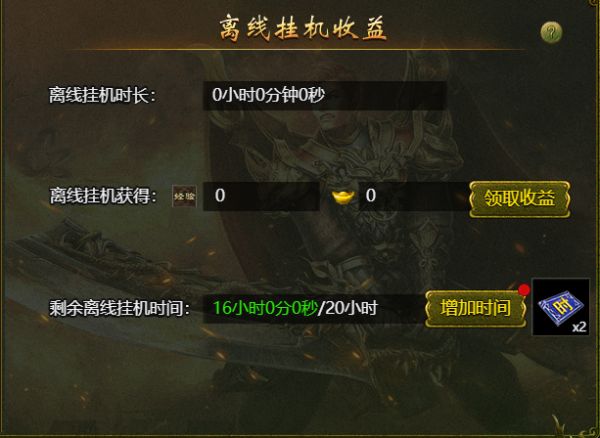 存储的离线挂机时间最大可累计20小时,可通过离线挂机卡道具增加离线时间
