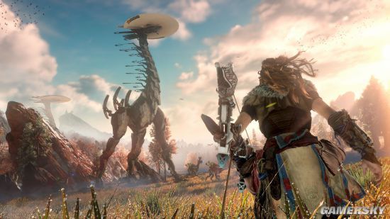 《地平线:黎明时分》是由“杀戮地带”系列开发商Guerrilla Games为PS4打造的独占作品,之前开发的PS4首发独占游戏《杀戮地带:暗影坠落》虽然素质平庸,但出色的画面效果却给玩家留下了深刻印象。本作为一款原创作品,游戏设定在人类世界被神秘的机械生命所统治的科幻背景下,玩家扮演主人公与这些体型巨大,危险且难缠的机械恐龙进行战斗。