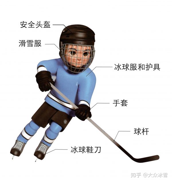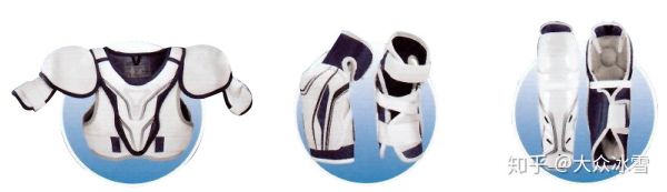冰球服和护具——保护身体重要部位,防止撞伤、摔伤,或被冰球击伤。